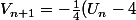donc Vn est une suite geometrique de raison -1/4 et de 1er terme V0=U0-4=-1 donc