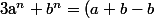 ^{n}+b^{n}=\Bigsum_{k=0}^{n} (a+b)^{n-k}(-b)^{k}+b^{n}=(a+b)^{n}+\Bigsum_{k=1}^{n-1} (a+b)^{n-k}(-b)^{k}+(-b)^{n} +b^{n})