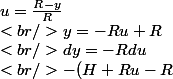 \sqrt{R^2-(R-y)^2}dy \\<br />(H-y)R\sqrt{1-(\frac{R-H}{R})^2} dy\\)