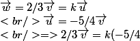 u,v,w sont trois vecteurs .déterminer le nombre k tel que w=ku sachant que u=-5/4v et que w=2/3v
