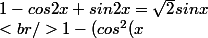 -sin^2(x))+2sin(x)cos(x)=\sqrt{2}sin(x)\\<br />2sin^2(x)+2sin(x)cos(x)=\sqrt{2}sin(x)\\<br />sin(x)+cos(x)=\frac{\sqrt{2}}{2})