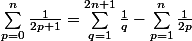 ^{p}}{p}}=\displaystyle \sum_{p=1}^{n}{\frac{1}{2p}} - \displaystyle \sum_{p=0}^{n}{\frac{1}{2p+1}})