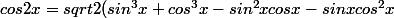 cos(2x)=RACINE(2)*((sin(x)^3)+(cos(x)^3)-((sin(x)^2)*(cos(x)))-((sin(x)*((cos(x))^2))