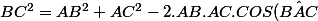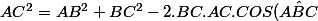 Oui mais le cosinus de l'angle ( AB, AC) ca me fait l'angle BAC non? pas l'angle ABC.