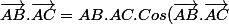 C'est quoi l'équation qui donne le produit scalaire en fonction des deux valeurs absolues des cotés et de l'angle ? regardes dans ton cours :