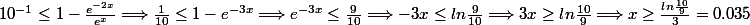 Il y aussi un "-" en trop qui traine devant le ln(0.9) et un >= qui devient <=.