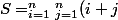 \\<br />S = \left( \bigsum_{i=1}^n \bigsum_{j=1}^n i \right) + \left( \bigsum_{i=1}^n \bigsum_{j=1}^n j \right))
