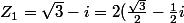 =2e^{-i\frac{\pi}{6}}=2(cos(\frac{\pi}{6})+isin(-\frac{\pi}{6}))\\ Z_2=\overline{Z_1}=\sqrt{3}+i=\overline{2e^{-i\frac{\pi}{6}}}=2e^{i\frac{\pi}{6}}=2(cos(\frac{\pi}{6})+isin(\frac{\pi}{6})))