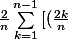 ^2\ +\ {{2k}\over{n}}\ +\ 1]\ }\\={\ 2\over{n}}\sum_{k=1}^{n-1}{[({2\over{n}})^2k^2\ +\ {2\over{n}k}\ +\ 1]}<br />\\={{2\over{n}}\sum_{k=1}^{n-1}{({2\over{n}})^2k^2\ +\ {2\over{n}}\sum_{k=1}^{n-1}{2\over{n}}k\ +\ \sum_{k=1}^{n-1}1<br />\ =\ {{8\over{n^3}}\sum_{k=1}^{n-1}k^2\ +\ {4\over{n^2}}\sum_{k=1}^{n-1}k\ +\ {2\over{n}}\sum_{k=1}^{n-1}1})
