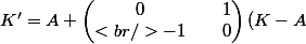 et on écrit AK=e, pis on fait rotater le point K de -90° pour avoir notre point A'=K'.