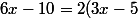 Vous avez ce que Busard des roseaux a dit auparavant en ce qui concerne la double distributivité. Transformez donc l'écriture de 6x-10 et remarquez que l'on peut mettre quelque chose en facteur commun.