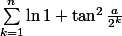 \)=\ln\(\prod_{k=1}^n 1+\tan^2\(\frac{a}{2^k} \)\)=\ln\(\prod_{k=1}^n \frac{1}{\cos^2\(\frac{a}{2^k} \)}\)=-\ln\(\prod_{k=1}^n \cos^2\(\frac{a}{2^k} \)\))