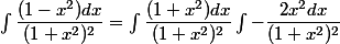 dx}{(1+x^2)^2}=\int\dfrac{(1+x^2)dx}{(1+x^2)^2}\int-\dfrac{2x^2dx}{(1+x^2)^2})