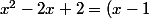 car x²-2x+2=0 n'a pas de solution dans R (la courbe y=x²-2x+2 est au-dessus de l'axe des abscisses et par conséquent ne coupe pas y=0)