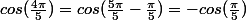 =cos(\frac{5\pi}{5}-\frac{\pi}{5})=-cos(\frac{\pi}{5}))