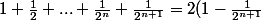 mathelot a écrit::= 1+\frac{1}{2}+...+\frac{1}{2^n}=2(1-\frac{1}{2^{n+1}}))