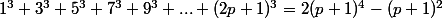 Merci pour vos réponses Donc si j'ai bien compris ensuite je fais l'hérédité : 1^3+3^3+...+(2(p+1)-1)^3=2(p+1)^4-(p+1)^2 J'ai donc compris que je dois démontrer que la somme des termes de 1 à (2(p+1)-1)^3 est égale à 2(p+1)^4-(p+1)^2 Si...