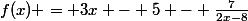 COMMENT IL FAUD FAIRE pour démontrer que pour tout x de R\{4} on a f(x)=3x-5-7/2x-8? je c'est j'ai besoin d'un coup de pouce s'il vous plait