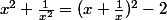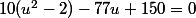 Bonjour, Je suis bloqué sur la résolution du polynome de 4ème degré : (E): 10x^4-77x^3+150x^2-77x+10=0 En effet, on demande de diviser l'équation par x², ce qui fait (E): 10x^2-77x+150-77\frac{1}{x}+10\frac{1}{x^2}=0 puis de démontrer que x^2+\frac{1}{x^2}=(x+\frac{1}{x})^2-2...