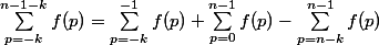 =\sum_{p=-k}^{-1}{f(p)}+\sum_{p=0}^{n-1}{f(p)}-\sum_{p=n-k}^{n-1}{f(p)})