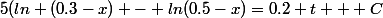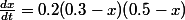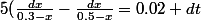 vous faite un produit en crois si jai bien compris pour dt mais je ne comprend oas comment vous apporter 5(dx/0.3-x - dx/0.5-x) cest a ce moment que je suis perdue