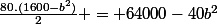 Je multiplie, comme le dis la formule, la base (qui vaut 80) par la hauteur (c'est un triangle rectangle, donc l'un des deux côtés de l'angle droit) et on divise le tout par deux.