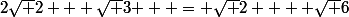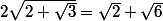 Merci pour votre coup de pouce :happy2: 2\sqrt {2 + \sqrt 3 } = \sqrt 2 + \sqrt 6 \\ {\left( {2\sqrt {2 + \sqrt 3 } } \right)}\nolimits^2={\left( {\sqrt 2 + \sqrt 6 } \right)}\nolimits^2 \\ 4\left( {2 + \sqrt 3 } \right) = {\left( {\sqrt 2 + \sqrt 6 } \right)}\nolimit...