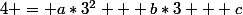 Et s'il te prenait l'idée de porter c dans les 2 dernières équations et de résoudre le système d'inconnues a et b ?
