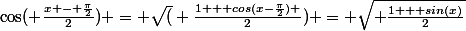 comme x est dans 0;pi, x/2-pi/4 est dans -pi/4;pi/4 et cos est positive, donc c'est bien sqrt et pas -sqrt