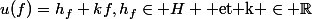 =h_f+kf\ ,\ h_f\in H \text{ et k }\in \mathbb{R})