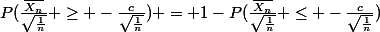 = 1-P(\frac{\bar{X_n}}{\sqrt{\frac{1}{n}}} \leq -\frac{c}{\sqrt{\frac{1}{n}}}))