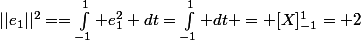 ||1||²=int(de -1 à1) de 1dx =2 tu prends donc e1=1/rac(2)