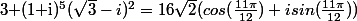 ^5(\sqrt3-i)^2=16\sqrt{2}(cos(\frac{11\pi}{12})+isin(\frac{11\pi}{12})))