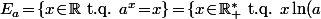 \!=\!\ln(x)\}\!=\!\{x\!\in\!{\mathbb R}_+^*\text{ t.q. }f(x)\!=\!\ln(a)\}\ \Big(\!=\!f^{-1}\big(\{\ln(a)\}\big)\Big))