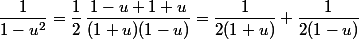 (1-u)}=\dfrac{1}{2(1+u)}+\dfrac{1}{2(1-u)})