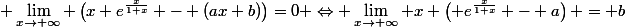 \right)=0 \Leftrightarrow \lim_{x\to+\infty} x \left( e^{\frac{x}{1+x}} - a\right) = b)