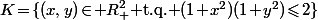 \!\in\!{\mathbb R}_+^2\mbox{ t.q. }(1\!+\!x^2)(1\!+\!y^2)\!\leqslant\!2\})