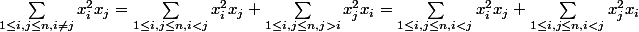 ^2=\sum_{i=1}^n x_i^2+2\sum_{i=1}^{n-1}{\sum_{j=i+1}^n x_ix_j})