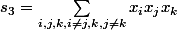 ^3=\sum_{i=1}^n x_i^3+3\sum_{i=1}^{n-1}\sum_{j=i+1}^n (x_i^2x_j+x_j^2x_i)+6\sum_{i=1}^{n-2}\sum_{j=i+1}^{n-1}\sum_{k=j+1}^n x_ix_jx_k)