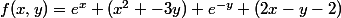 f(x,y)=-3e^x-2xe(^y)+C'(y) et -3e^x-2xe^(-y)+C'(y)=-3e^x-(2x-y-1)e^(-y)