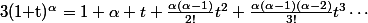^{\alpha}=1+\alpha t+\frac{\alpha(\alpha-1)}{2!}t^2+\frac{\alpha(\alpha-1)(\alpha-2)}{3!}t^3\cdots)