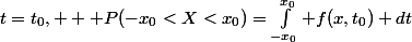 et cela se calcule très bien et ça ne dépend pas de x_0 (ou de t_0). Après il y a des tables ou une calculatrice pour avoir une valeur approchée. Mais au départ c'est un calcul intégral à faire.