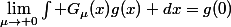 quand µ tend vers 0, l'intégrale de Gµ(x) sur [-e,e] tend vers 1 (et là g est aussi proche de g(0) que tu veux par continuité) ;