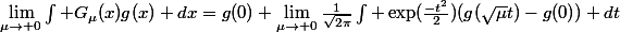 g(x) dx=g(0)+\lim_{\mu\to 0}\frac{1}{\sqrt{2\pi}}\int \exp(\frac{-t^2}{2})(g(\sqrt{\mu}t)-g(0)) dt)