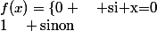 =\{0 \quad \mbox{si x=0}\\1\quad \mbox{sinon})