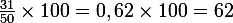 Le plus sûr est de dire : "(31/50)*100=62, donc il y a 62% de ..."