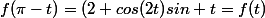 =- cos{t}}^{f(\pi-t)=(2-cos {(2t)})sin t})