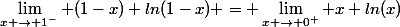 Or, dans la correction ça se fait par croissances comparées : lim (1-x)ln(1-x) = 0 lorsque x tend vers 1