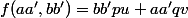 f(a',b') &=& (bpu+aqv)(b'pu+a'qv)\\ &=& bb'p^2u^2+aa'q^2v^2 \end{matrix})