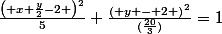 }^2}{5}+\frac{{\left( y - 2 \right)}^2}{(\frac{20}{3})}=1)